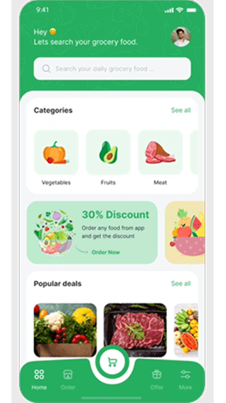 Thoughtfull yet real experience of having access to your daily grocery store on your phone!